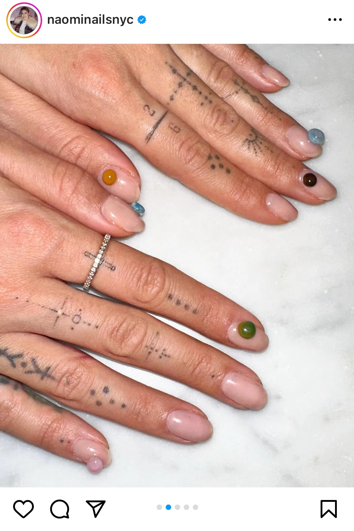 „A pillangók csillogó krizmaként kezdik életüket, mielőtt átalakulnának, ebből kiindulva Jen természetes körmét felpolíroztam, megalapozva ezzel a fényes hatást, majd egy áttetsző gyöngyház fedőlakkal koronáztam meg az extra csillogás érdekében" - meséli a sztármanikűrös a brit VOGUE-nak.