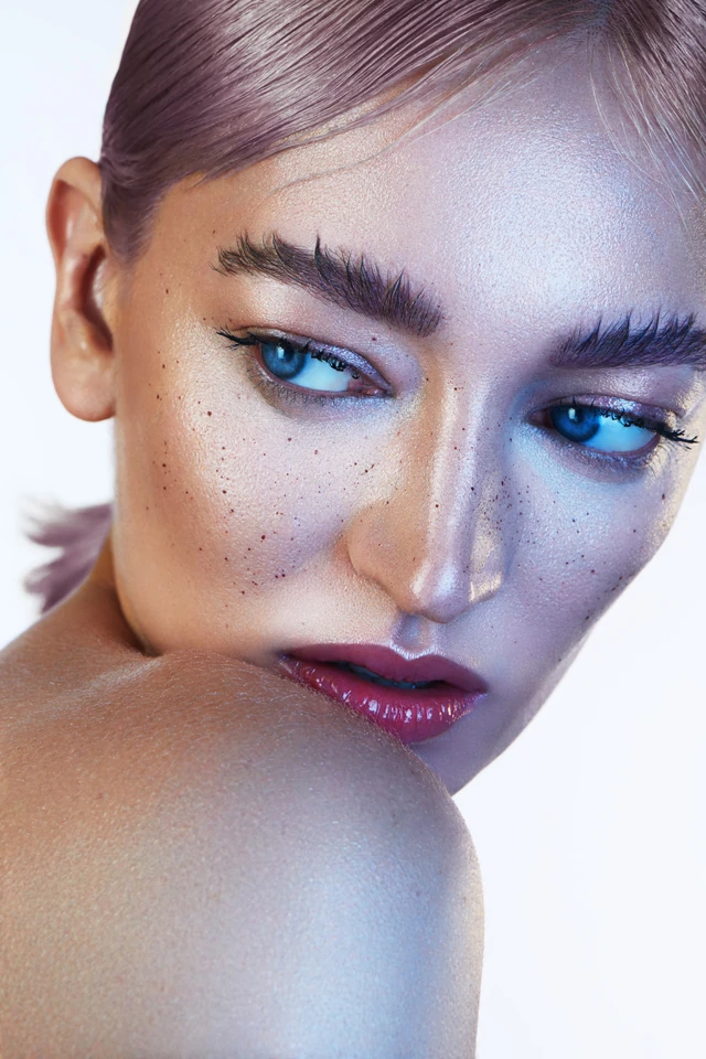 Ez aztán a szemet gyönyörködtető alkotás! Nyugi, nem olyan bonyolult, mint amennyire gondolod! Ha a finom szemcséjű pigmenteket olajjal vagy sminkfixáló cseppekkel összekevered elérheted ezt az egészen krómos hatást. Felejtsd el a precíz vonásokat! Fogj egy szempillaspirál applikátort és nyomkodó mozdulatokkal vidd fel vele a színt, sőt, akár össze is csaphatod vele az arcod, hogy apró fényes szeplőket kreálj!