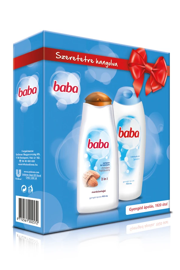 A Baba termékeivel az ünnepek alatt is gondoskodhatsz szeretteidről! A Baba Lanolinos Tusfürdő segít gondoskodni az egész családról, miközben gyengéden ápol, a 2in1 Mandulás sampon és hajbalzsam pedig gyengéd tisztító hatása mellett csodás illatot kölcsönöz a hajkoronának.