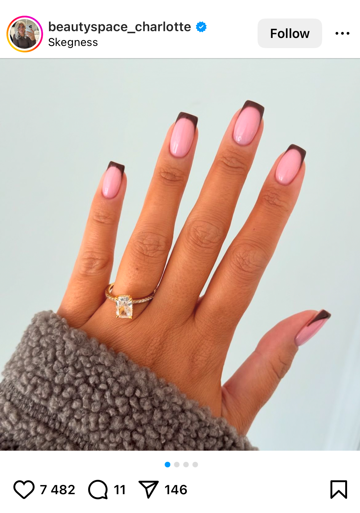 A mandula forma a hosszú körmök, a lágy négyzet vagy a squoval (amely a négyzet és az ovális forma kombinációja) pedig a rövid körmök esetében a legkeresettebb jelenleg. A rövid körmök tehát remekül mutatnak lágy négyzet formában egyenesen vágott, lekerekített sarokkal: tiszta, "összeszedett" hatást keltve.