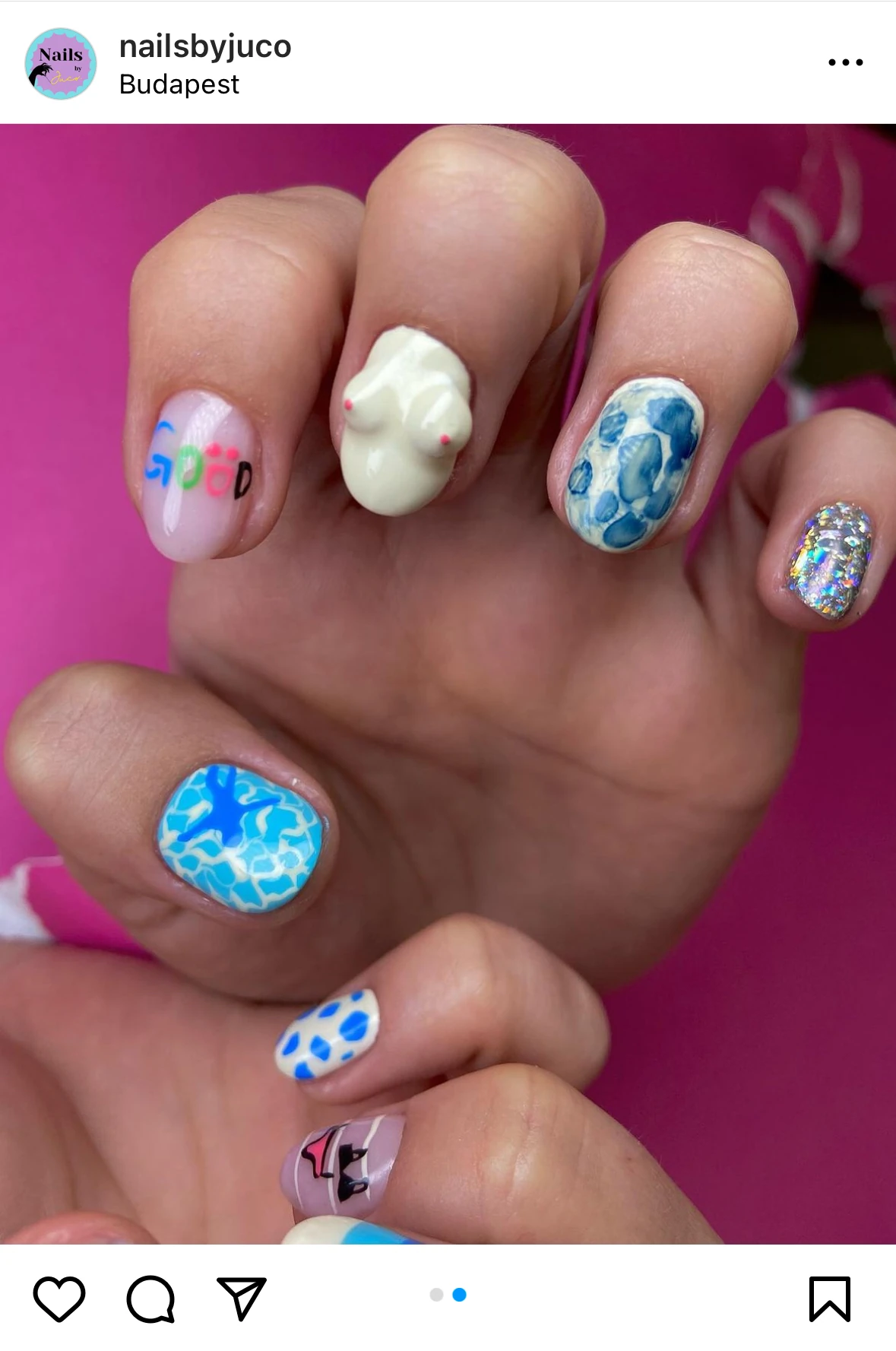 Persze a körmök divatja ugyanolyan változó, a szín tekintetében jellegzetesen az évszakok közötti különbségek a legszembetűnőbbek. Egy köröm elkészítéséhez sokféle felület inspirációt adhat, de az igazán művészi vénával rendelkezők mindenben az új ötleteket keresik. „Ahogyan a divatipar számos területén, úgy a körmök esetében is folyamatosan változnak az aktuális trendek. Amit mostanában a leggyakrabban kérni szoktak tőlem, azok a 3D-s körmök” - meséli Corinna. „Imádom nézni, ahogy szinte életre kelnek, tapinthatóak lesznek a minták és különféle textúrákat lehet létrehozni az anyag segítségével. Igazából szerintem a lényeg a különféle technikák keverése, itt nem lehet túlzásba esni, nagyon jól mutat, ha minden köröm más.”