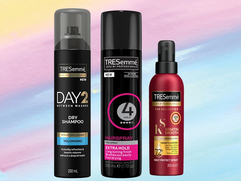 Day2 volumennövelő szárazsampon TRESEMMÉ 1699 Ft/250 ml (6,79 Ft/1 ml) | Extra Hold hajlakk TRESEMMÉ 1699 Ft/250 ml (6,79 Ft/1 ml) | Keratin Smooth hővédő spray TRESEMMÉ 1699 Ft/200 ml (8,49 Ft/1 ml)