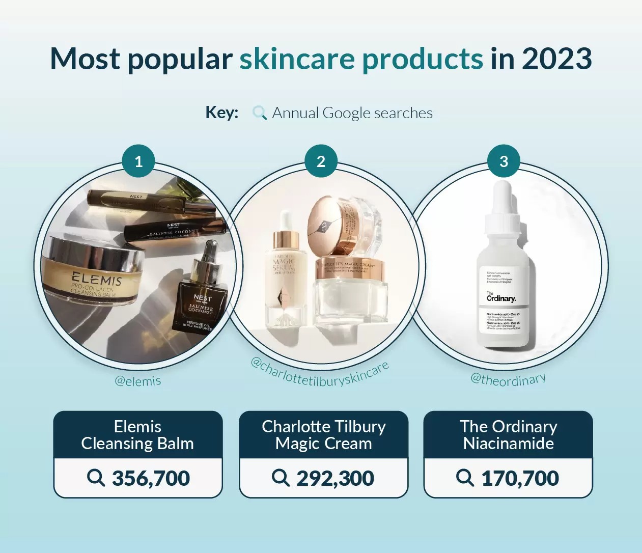 A Google szerint jelenleg a legtöbbet keresett termék az Elemis tisztító balzsam. Ez a márka legkelendőbb termékcsaládja, amely 3 egyedi textúrájú terméket foglal magában: egy tápláló balzsam, egy tisztító olaj és egy hidratáló tisztító tej, amik együtt alkotják a sikeres termékcsomagot.