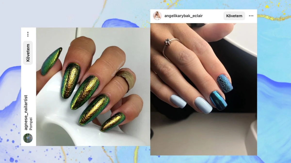 A kígyóbőrre hajazó különleges textúrájú köröm nemcsak a hüllőszerű dizájn miatt igazán lenyűgöző, hanem az is szót érdemel, hogy milyen lenyűgöző annak kivitelezése is. A szabadon formálódó érdes felület ugyanis buborékok által alakul ki, és te is elképesztő manikűrt varázsolhatsz magadnak ezzel a technikával néhány pillanat alatt!