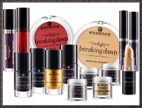 A Twilight Hajnalhasadás második epizódja is megihlette az Essence márkát. Misztikus hajnali színekkel, fantasztikusan csillogó pigmentekkel, valamint sötét, drámai hatásokkal és vérvörös termékekkel készültek a november 15-én sorra kerülő premierre. A hét különböző terméktípussal lenyűgöző vámpírerőt varázsolhatsz magadnak. A film bemutatójával egy időben debütál majd a boltokban az Essence Twilight Breaking Dawn part 2. kollekciója, amely a varázslatos, ígéző színek mellett a kedvező árával is elbűvöl majd!
