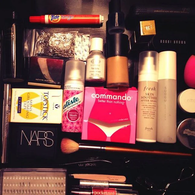 Hermione biztosan büszke lenne, mert megtestesítője pontosan tudja, hogy minden eshetőségre és balesetre fel kell készülni, ráadásul a legjobb termékeket és kencéket rejti neszesszere. A fotón látható többek között előrelátó módon folteltávolító és egy halom csipesz, illetve biztostű. A brit színésznő sminkkészlete továbbá olyan különlegességekből áll, mint Nars pirosító, Armani alapozó, műszempillák, többrendbeli rúzs és szárazsampon, de olyan kincseket is találunk itt, mint a ruharagasztó, arra az esetre, ha valami kivillanna, illetve láthatatlan bugyi is. Mi is elfogadnánk ezeket, és amiért Emma Watson volt olyan bátor, hogy megosztotta kulisszatitkait és életmentőcsomagját, mi még jobban szeretjük!