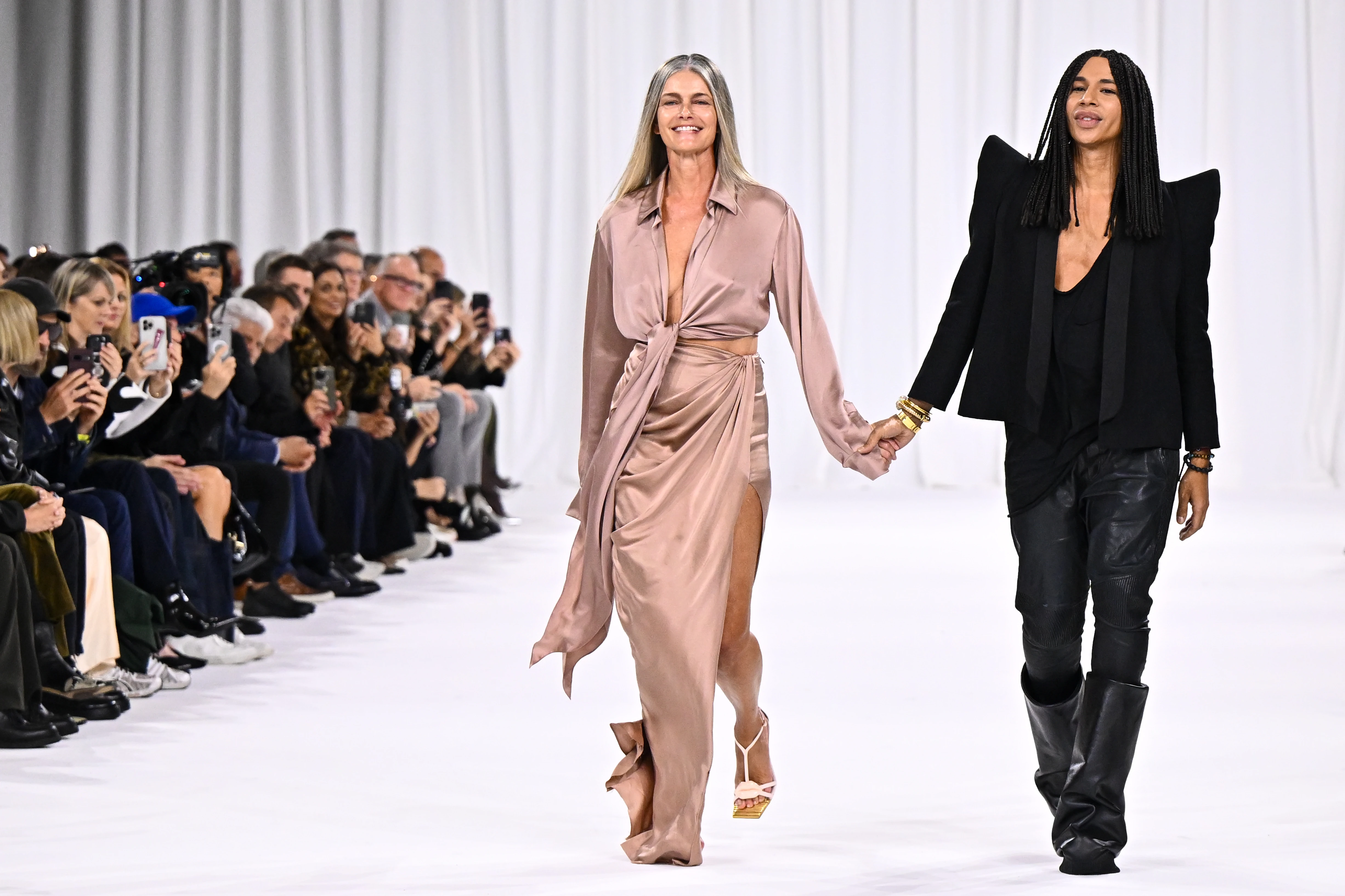 Paulina Porizkova és Olivier Rousteing a Balmain kifutóján