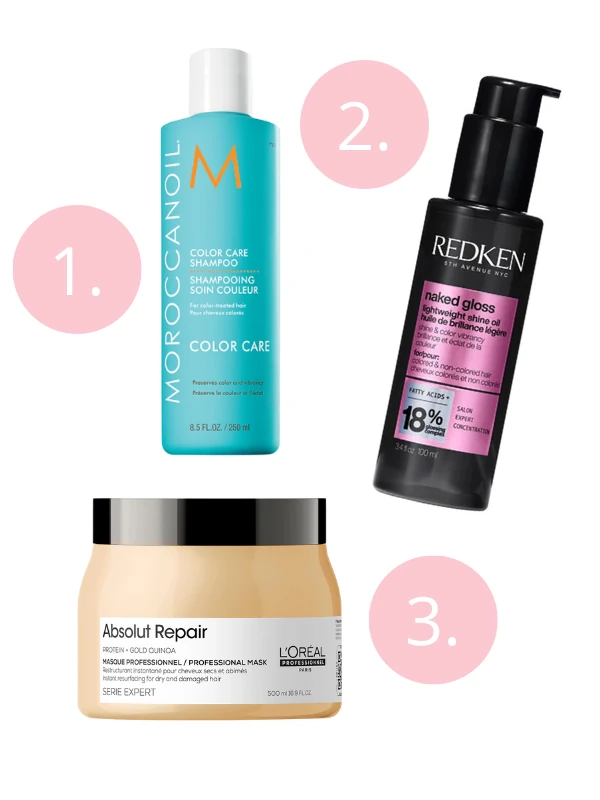 1. Color Care ápoló sampon festett hajra MOROCCANOIL 10 900 Ft/250 ml (43,6 Ft/1 ml) 2. Acidic Color Gloss Naked Gloss olaj festett hajra REDKEN 3. Serie Expert Absolut Repair mélyen regeneráló hajmaszk L'ORÉAL PROFESSIONNEL
