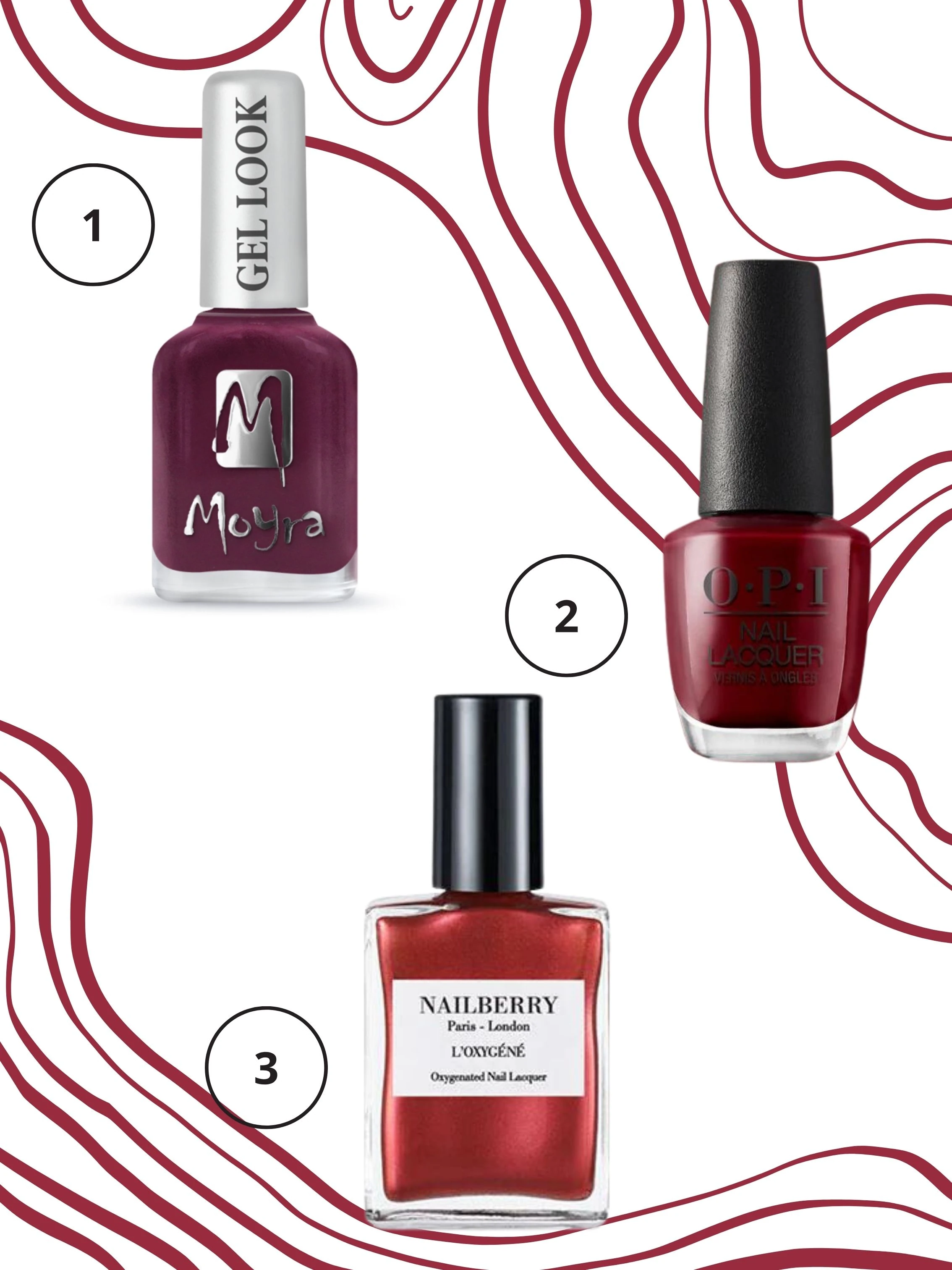 Ha szeretnél kicsit egyedibb végeredményt, díszítsd kedvedre, vagy használj matt hatású fedőlakkot! A fehér szín remek kiegészítője a bordó árnyalatainak, így egy kis hullám vonal fehér díszítő lakkal utalhat a bor kiöntésére és remekül mutat majd a körmeiden!