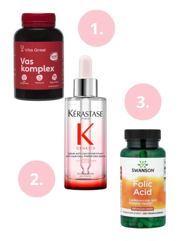 Először is, nagyon fontos lenne megszüntetni először a belső okot, ami miatt kialakult a probléma, ez után pedig alkalmazhatunk kifejezetten hajhullásgátló készítményeket. Létezik egy anyag, ami hathatósan vissza tudja szorítani az általános hajhullást: ez az aminexil. Én a Kérastase Genesis hajápoló családját szoktam ajánlani ilyen esetekben, mivel az ide tartozó termékek mindegyikében nagyon magas hatóanyag tartalommal van jelen az aminexil.