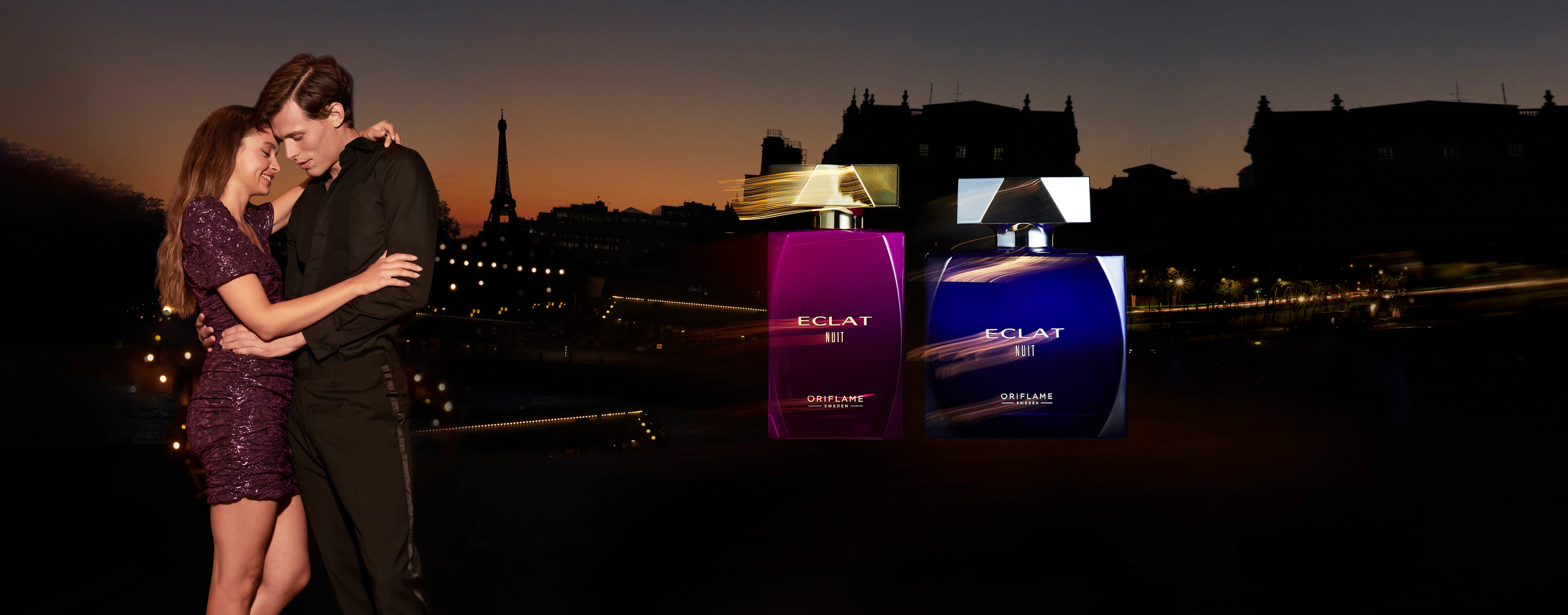 Az éjszakai párizsi hangulat semmihez sem fogható: minden csillogó, érzéki és vonzó. Az Oriflame új férfi és női illatát, az Eclat Nuit parfümöket Franciaország ihlette, illatukban a modern elegancia és a sikkes éjszakai élet köszön vissza. Az Eclat Nuit a párizsi éjszakák esszenciáját foglalja magában, az elegáns Eclat üvegcsék pedig modern éjszakai motívumokat idéznek. Egyetlen fújással azonnal odaképzelheted magad a párizsi éjszakába, amelynek hangulata semmihez sem hasonlítható. Bármerre is sodródj, a város minden pontján érezni lehet a káprázatos, érzéki energia lüktetését. Készen állsz a szerelemre?