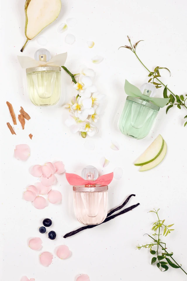 A parfüm átlátszó, bordázott üvege csupa finomság és báj. A színes fém záródás nőies keretet ad, egyben stílusos és minőségi részlet. A fehérnemű különleges, bensőséges hangulatát az üvegek nyakát díszítő pamut szalag idézi fel. Az átlátszó kupak jelenti az utolsó simítást, mely az egész megjelenést ellenállhatatlanná teszi.