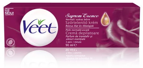 A Veet? szőrtelenítő termékeivel percek alatt sima és selymes lehet a bőrünk, és a hatás hosszan tart. Az új, rózsás illóolajat tartalmazó Veet? Supreme Essence krém, krém spray és hideggyanta csíkok pedig a kellemes illatról is gondoskodnak.