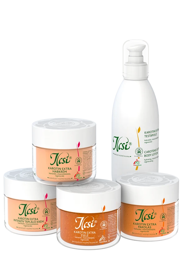 Az Ilcsi új, KAROTIN EXTRA termékcsaládja valódi bőrszépítő vitaminbomba a benne rejlő extra mennyiségű karotinnak köszönhetően. A berkenye, a sárgadinnye és a sárgarépa hatását ötvözve, vitaminokkal tölti fel a bőrt, friss, bársonyos érzést és kiegyensúlyozott hidratáltságot eredményez.