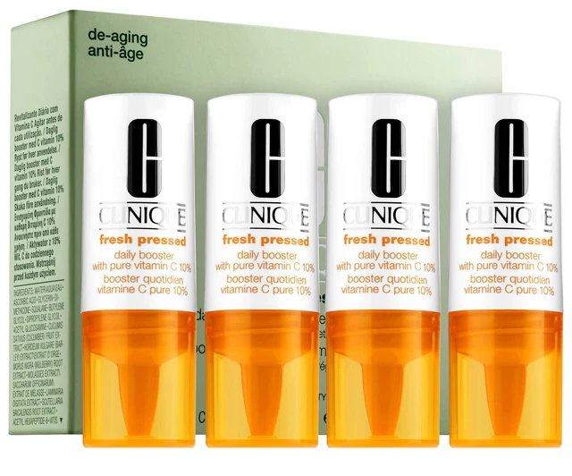 A Clinique tehát most előállt egy új megoldással: egy olyan boostert (vagyis hatásfokozót) alkotott meg, amely csordultig van aktív C-vitaminnal, ami már régi ismerősünk, így bízhatunk is benne. A C-vitamin többek között antioxidáns hatású, segíti a bőrsejtek megújulását, védi őket az idő előtti öregedéstől. Emellett ragyogó, egységes bőrtónust ad, és legyőzi a mindennapi stressz bőrön látható nyomait. A boosterből elegendő napi 2 csepp a kedvenc hidratáló arckrémedbe, és máris kész a feltuningolt arcápolód! A Clinique Fresh Pressed Daily Booster nem csak Clinique hidratáló krémmel kompatibilis.
