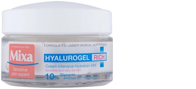 Mixa Hyalurogel Rich hialuronsavval gazdagított intenzíven hidratáló arcápoló 50 ml, ajánlott fogy. ára: 2999 Ft.