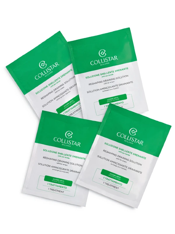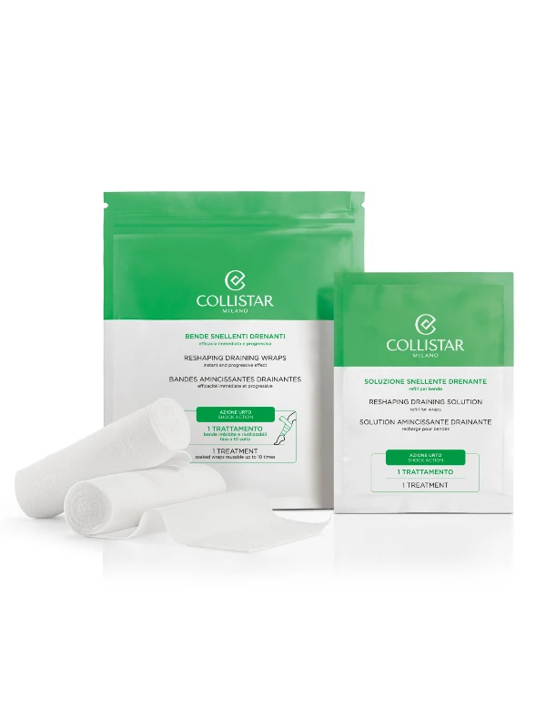 A Collistar ismert testkezeléseiről, ezúttal bármilyen testrészre alkalmazható alakformáló, nyirokkeringést stimuláló tekercseket alkottak meg. A csomag két, otthoni használatra alkalmas professzionális fáslit tartalmaz, amelyek akár tízszer is újrafelhasználhatók, utántöltő folyadék vásárolható hozzájuk. A folyadék gyengéd, de hatékony anyagcserét fokozó hatóanyagokat tartalmaz, a kezelés stimulálja a nyirokkeringést, és segíti a felhalmozódott víz elvezetését.