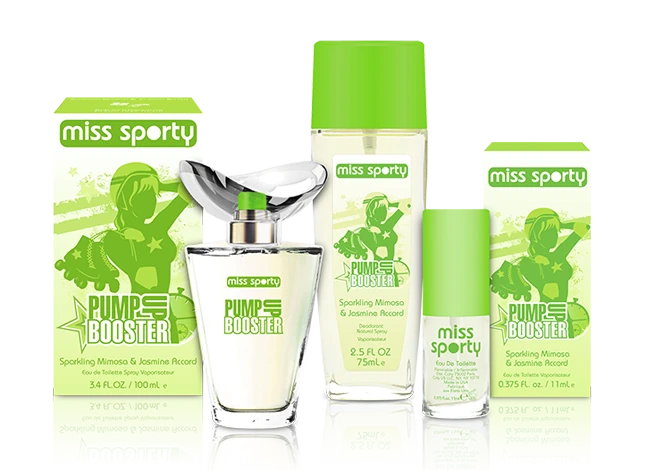 A Miss Sporty illat kollekció színeit az öröm és a tiszta boldogság inspirálta. A kollekció minden darabja sugárzóan nőies, fiatalos, csajos, árad belőlük a vidámság. Elég egyetlen fújás, ennyi is boldog mosolyt fakaszt, ahogy elképzeljük, milyen izgalmas lehetőséget tartogat számunkra az új nap. Minden illatot úgy terveztek, hogy az őket alkotó fő elemek tökéletes szerelmes párt alkossanak.