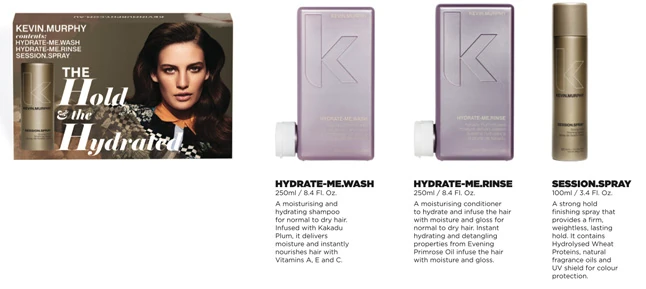 Közepes vagy vastag szálú hajú vendégek számára a HOLD&HYDRATED csomagban a HYDRATE-ME.WASH és RINSE mellé egy utazásokhoz is praktikus 100ml-es kiszerelésű SESSION.SPRAY biztosítja a megfelelő tartást és hidratálást. Ár: 13 999 Ft