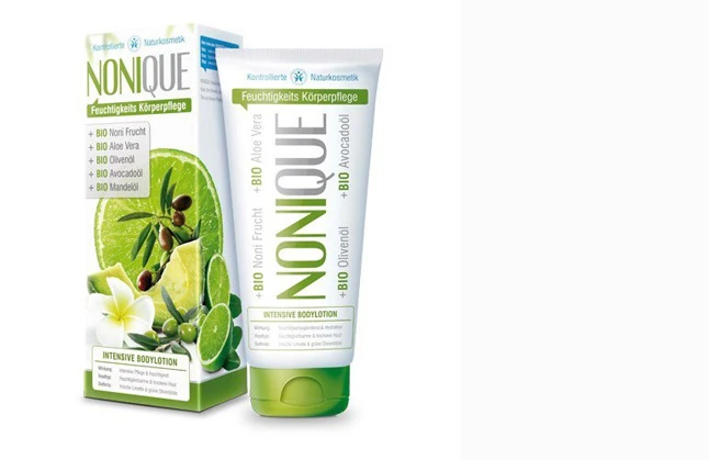 A bio nonit, bio aloe verát, bio oliva olajat, bio avokádó olajat, bio mandula olajat tartalmazó hidratáló testápoló különösen alkalmas az erősen dehidratált, nagyon száraz bőr ápolására. Kellemesen frissítő lime és olíva illattal rendlelkezik.