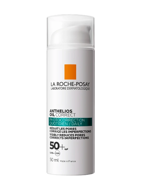 A La Roche-Posay Anthelios Oil Correct SPF 50+ gél-krém akár 12 órás mattító hatással kontrollálja az olajtermelődést a bőr felszínén. Szalicilsavval, niacinamiddal és cinkkel korrigálja a bőrhibákat, és megakadályozza a további kialakulásukat.