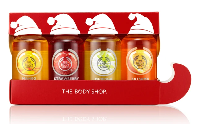 Csempéssz egy kis vidámságot a karácsonyfa alá ezzel a játékos, mini Tusfürdőkkel megrakott szánkóval! (Mandarinos tusfürdő 60ml, Mangós tusfürdő 60ml, Epres tusfürdő 60ml, Mézvirágos tusfürdő 60ml)