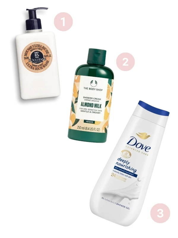 1. Shea vajas kézmosó és tusfürdő L'OCCITANE 6480 Ft/300 ml (21,6 Ft/1 ml) 2. Mandulatejes tusfürdő THE BODY SHOP 2690 Ft/250 ml (10,76 Ft/1 ml) 3. Deeply Nourishing krémtusfürdő DOVE 1599 Ft/225 ml (7,1 Ft/1 ml)