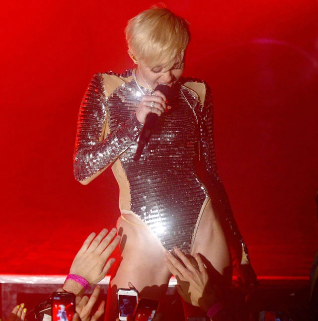 Miley Cyrus éppen a legvadabb periódusában volt, naponta posztolt füvezős fotókat magáról, amikor nem ezzel tengette az idejét, akkor pedig valami obszcén megnyilvánulással kergette őrületbe a közvéleményt. A londoni fellépésén aztán minden korábbinál tovább ment. Hatalmas gumipéniszen lovagolt, önkielégítés imitált, és később orálisan kényeztetett egy gumibabát. A leszbikus csókváltás már csak amolyan szűzies kilengésnek számított.