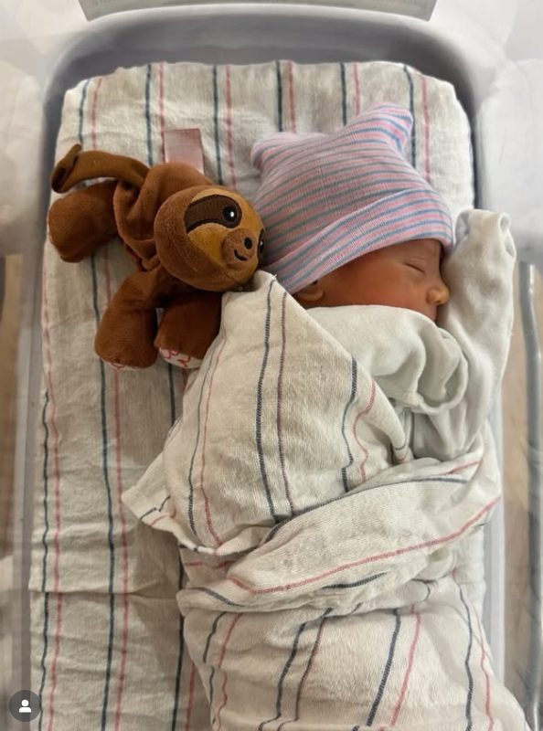 A képen az újszülött egy takaróba bugyolálva szundít, és egy kék-rózsaszín csíkos sapkát visel, miközben egy plüss lajhár ül mellette. „Az én Napsugaram 2025.12.17.” - írta a büszke anyuka a posztban. Így megtudhattuk, hogy a kicsi pontosan mikor született, de a neméről és nevéről egyelőre semmit nem árultak el a szülei.