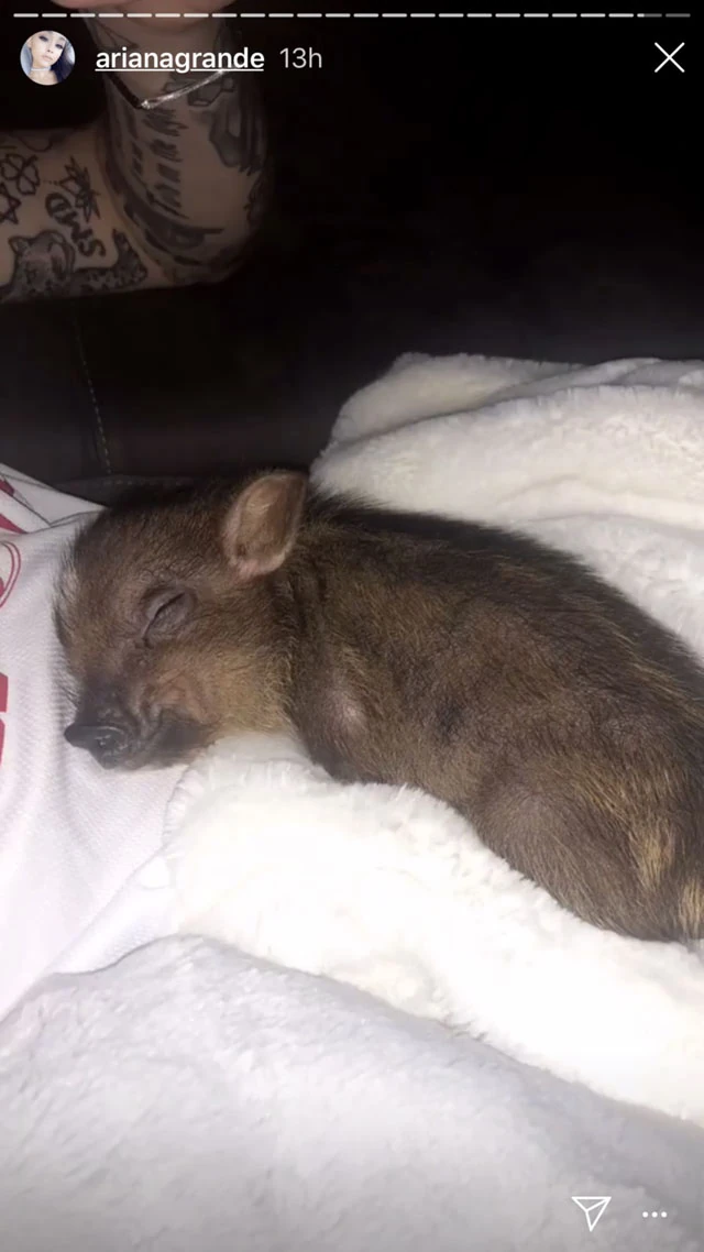 Pontosan nem lehet még tudni, hogy miért is van Ariana Grandénál és párjánál a malac, azonban a rajongók arra gyanakodnak, hogy a sztárpár örökbe fogadta a kis csöppséget.