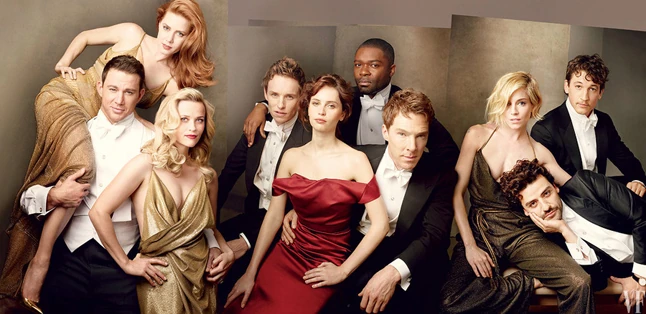 A márciusi Vanity Fair címlap azonban nem csak ennyiből áll, a kinyitható borító olyan további hírességeket mutat fel igazán glamúros összeállításokban, mint Eddie Redmayne, Felicity Jones, Benedict Cumberbatch és David Oyelowo, illetve Sienna Miller, Miles Teller és Oscar Isaac.