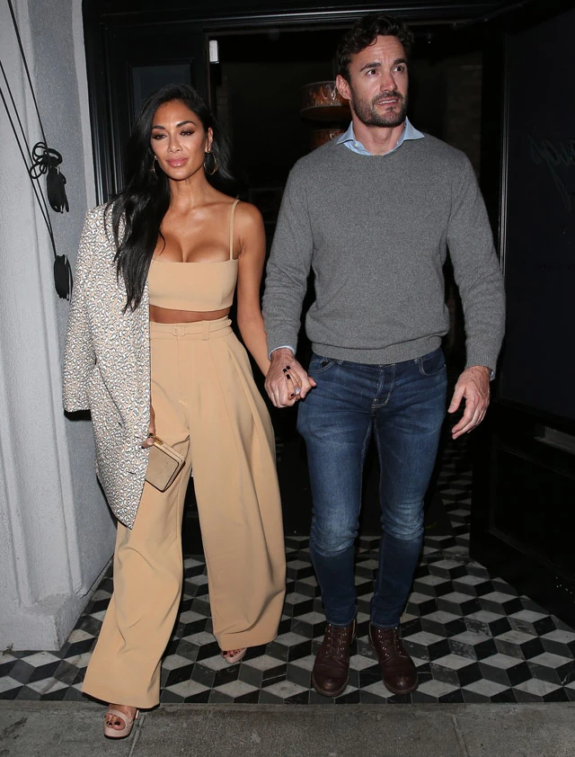 A Pussycat Doll egy bézs nadrágot viselt hozzáillő crop toppal, Thom Evans pedig farmert vett fel inggel és szürke pulcsival. Tökéletes páros!