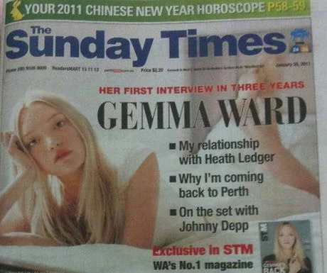 A modellkedéstől visszavonult Gemma Ward 3 éves szünet után leleplezte eltűnésének okát, és először beszélt Heath Leadgerrel való kapcsolatáról a The Sunday Times exkluzív interjújában. Gemma a leghíresebb modellek közé tartozott, legfiatalabbként került fel az amerikai Vogue címlapjára, és a legnagyobb divatházak kifutóin szerepelt, aztán hirtelen eltűnt, kicsit meghízott, többször felröppent a hír, hogy visszatér.