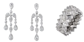 Ékszerei nagyon különleges hatást keltenek. 18 karátos sárga arany, csémántokkal díszített Cactus de Cartier fülbevalót, nyakláncot és gyűrűt viselt.