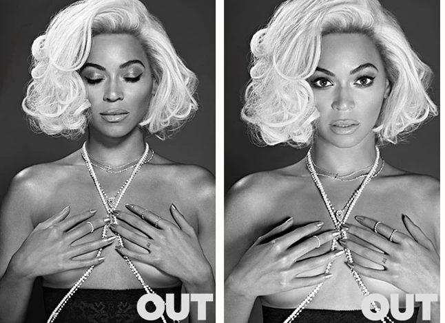 Az Out magazin számára természetesen készült ugyanebben az önbizalomtól és erőtől sugárzó szellemben egy hihetetlenül forró fotósorozat is, melyről eszünkbe jutott egy korábbi, ugyancsak roppant szexi editoriál a Flaunt magazinból. A fekete-fehér képeken Beyoncé megmutatja 2 milliódolláros alakját, cicijeit takargatja, miközben Marilyn Monroe-s platinaszőke hajjal pózol Santiago és Mauricio fotóspáros kamerája előtt.