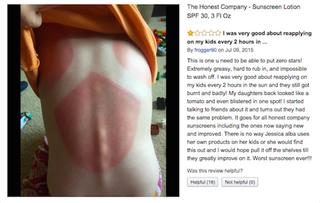 Nos, a Buzzfeed most bemutatta, hogy a Honest napteje akármennyire is természetes, és ajánlják akár babáknak is, a valóságban az organikus napvédelem helyett ropogósra sültek a vásárlók, akik a közösségi oldalakon tömegével osztják meg a horrorisztikus képeket a napon szerzett égési sérüléseikről. Vajon Jessica Alba megnyugatató mosolya elég lesz, hogy elsimítsa a botrányt?