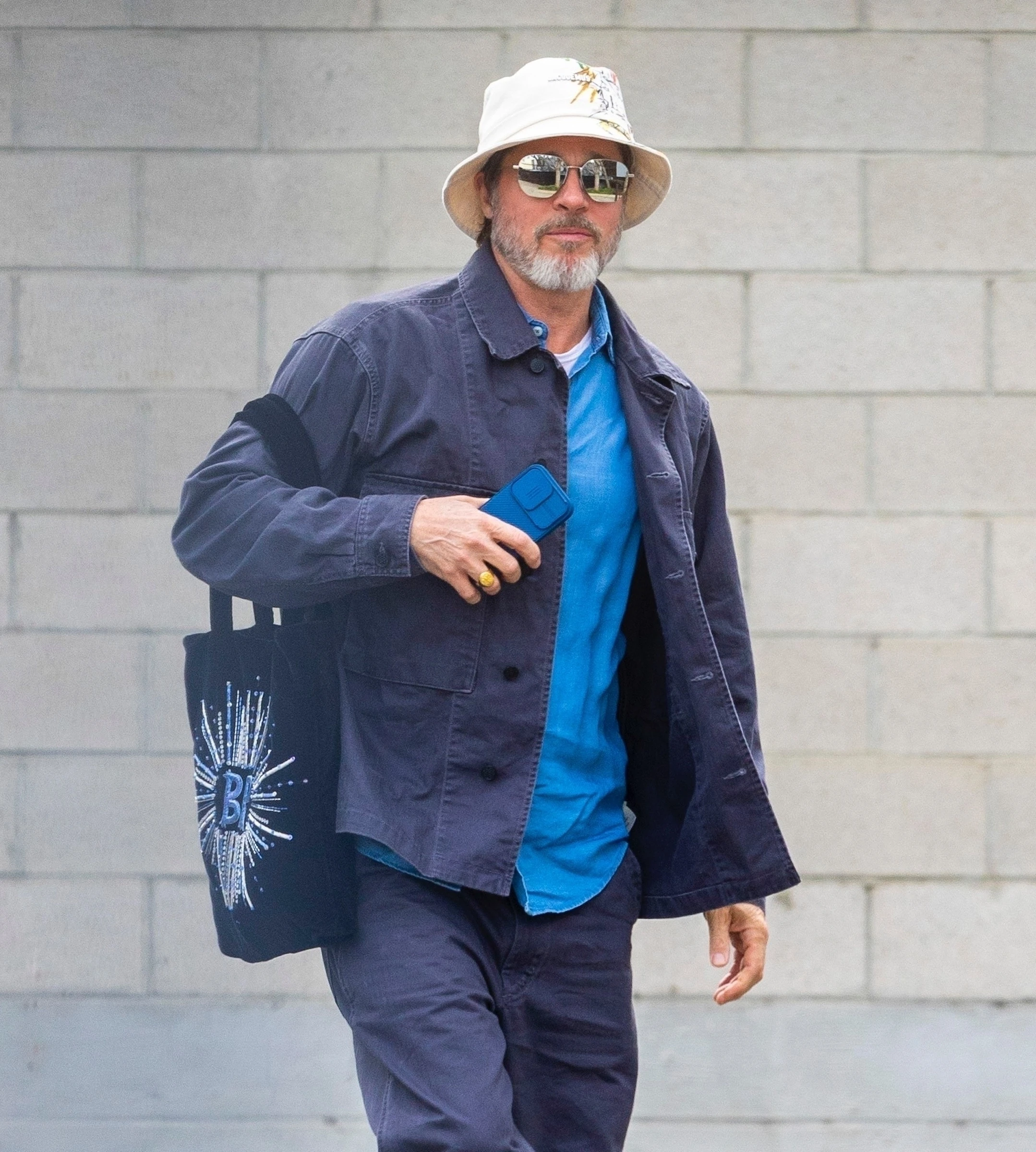 A 61 éves színész - akit ősz arcszőrzete miatt a People „ezüstrókának” nevezett - egy fehér kalap és egy napszemüveg mögé bújt a lesifotósok elől, miközben fehér pólót, kék inget, valamint szürkéskék kabátot és nadrágot viselt. Első látásra alig ismertünk rá!