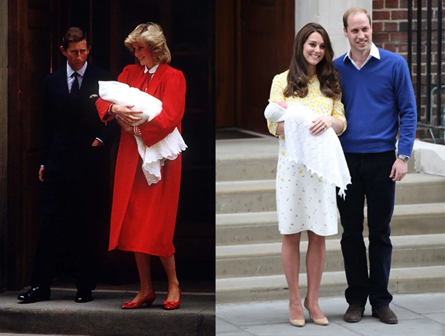 A bájos pöttyös Jenny Packham ruha, amit Kate Middleton viselt 5 évvel ezelőtt nagyon hasonlított arra a bizonyos világoszöld pöttyös darabra, amiben Diana hercegné lépett ki először a nyilvánosság szeme elé újszülött első fiával, Vilmossal 1982-ben: