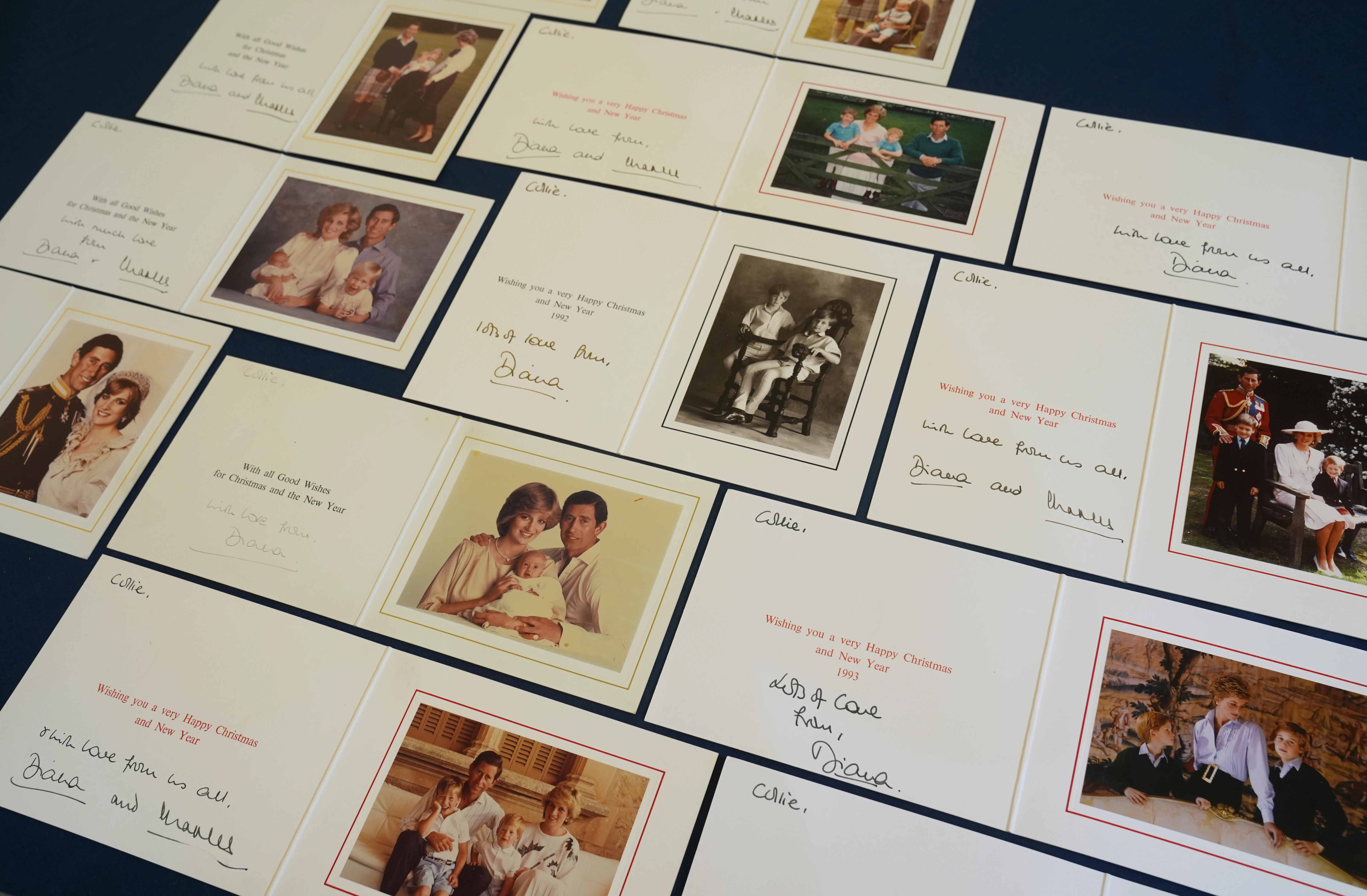 5 hónappal azután, hogy Károly király — akkor még herceg — 1981 nyarán feleségül vette Diana hercegnét, a pár első karácsonyi képeslapja meglehetősen hivatalosra sikerült, aminek az volt az oka, hogy egy esküvői fotót választottak ki, amelyet a következő évben szintén egy formálisabb, már Vilmos herceggel kiegészült fénykép követett. Ezután azonban a hercegi pár képeslapjai sokkal inkább magazinba illőkké, egystersmind lazábakká váltak. Az utóbbi jelleget nagyrészt Diana és Károly két fia biztosította.