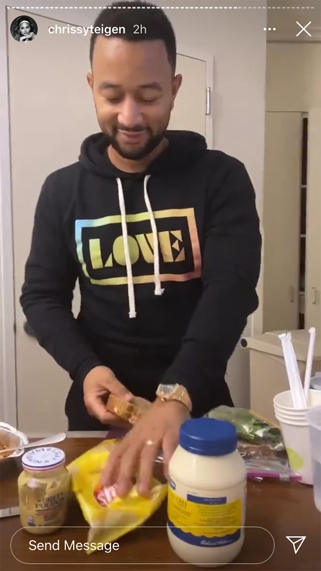 Férje, John Legend ott van mellette természetesen, sőt még azt is végig nézhettük élőben, ahogy elkészíti Chrissy egyik kedvenc vajas-sonkás-csipszes szendvicsét. Hát mi ez, ha nem a lehető legodaadóbb gondoskodás?