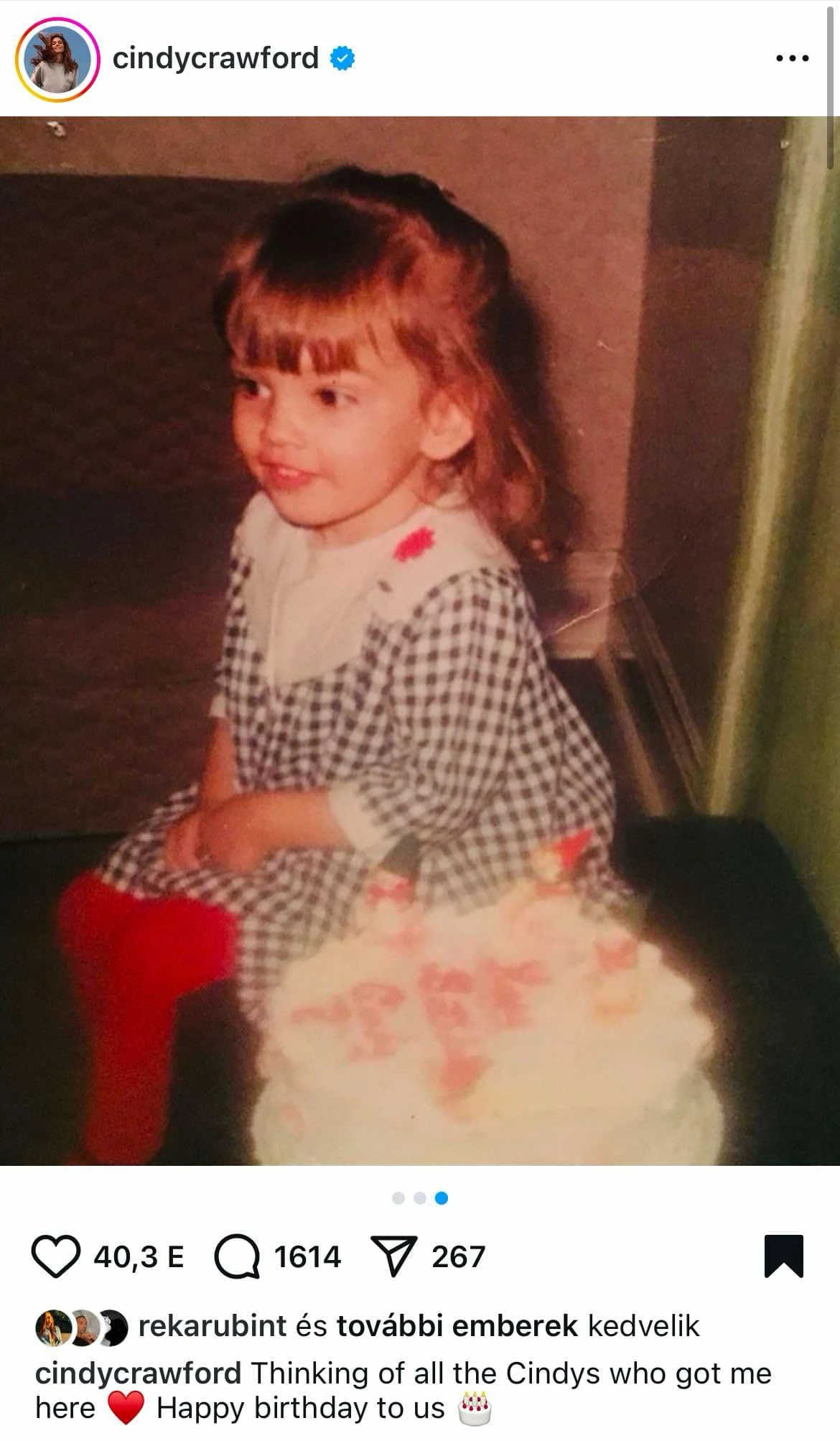 A modell az évek során számos interjúban mesélt arról, hogyan formálta őt a múltja, és milyen meghatározó pillanatok vezették el oda, ahol ma tart. Ez a gyermekkori fotó tökéletesen visszatükrözi azt az ártatlanságot és energiát, amely később világhírű szupermodellé tette. „Gondolok azokra a Cindykre, akik idáig elvezettek. Boldog születésnapot nekünk!"