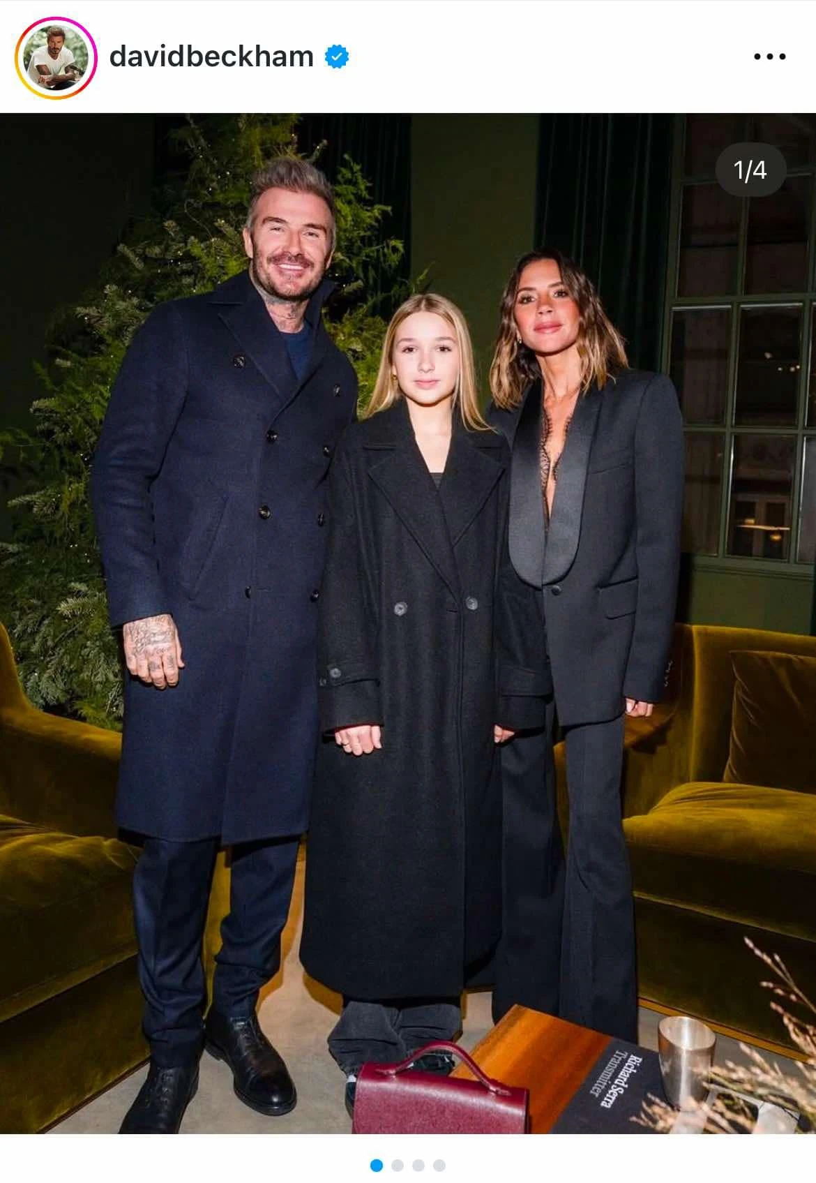 A 13 éves lány nemcsak lenyűgözően elegáns, de elképesztően hasonlít híres szüleire is, amire egy friss Instagram fotó a bizonyíték. A képen Harper egy letisztult, fekete kabátot visel, amely egyszerű, mégis elegáns, és remekül illik szülei kifinomult stílusához. Victoria Beckham egy mélyebb dekoltázsú, egyúttal visszafogott szabású öltönyben pózol, míg David Beckham klasszikus, sötétkék kabátban érkezett az eseményre. Harper arcvonásai és megjelenése egyértelműen visszatükrözi szülei irigylésre méltó külsejét.