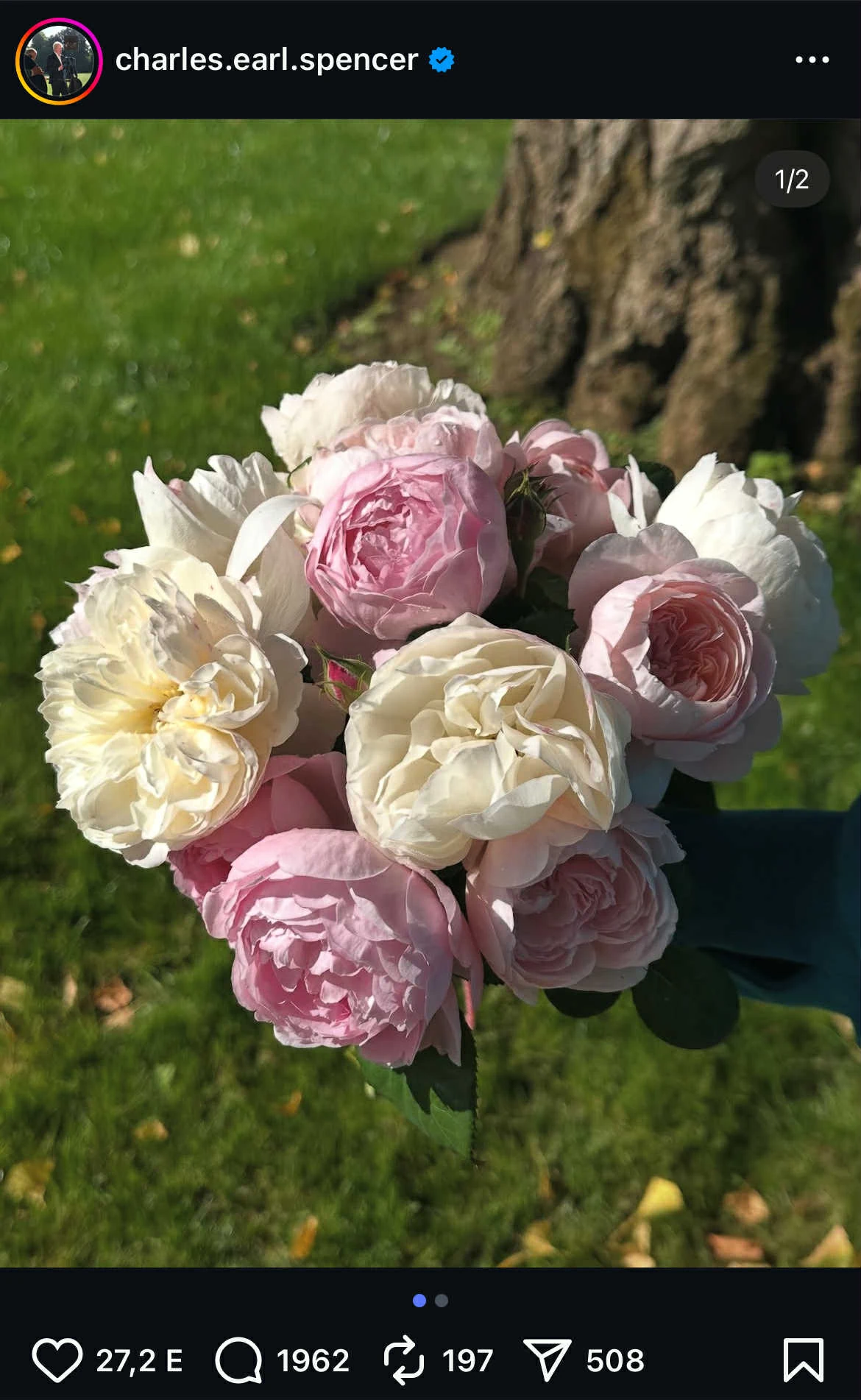 „A virágok, amelyeket ma reggel vágtunk az Althorp kertjeiben a Sziget számára. Mindig egy lehetetlen nap” – írta a 61 éves Charles Spencer, aki a rózsaszín és fehér virágokból álló csokor fotóját is megosztotta. A posztban egy másik képet is láthattunk a kis szigetről, ahol Diana nyugszik az Althorp birtokon, amely csak csónakkal közelíthető meg, és amely a család magánéletének megőrzése érdekében zárva van a nagyközönség előtt. Egykor egy híd kötötte össze a birtokkal, de ezt eltávolították, hogy megvédjék a sírhelyet a betolakodóktól.