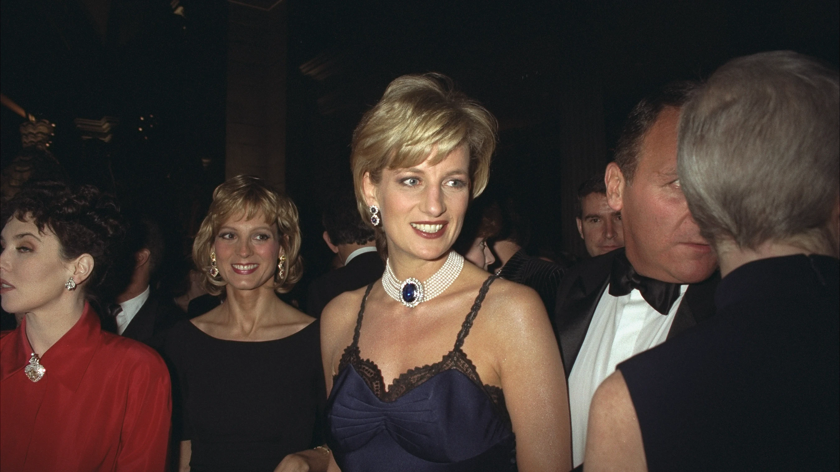 Diana egy sötétkék, csipkével finoman díszített, hosszú Dior ruhában jelent meg a gálán, ami John Galliano első Dior-kollekciójának egyik darabja volt. A fehérneműk utcán való viselése az utóbbi években igencsak népszerű lett, de Diana már akkor is ilyen trendérzékeny volt, és főleg merész! A selyem neglizsét a hercegné egy kékköves, gyöngysoros chokerrel tette még vonzóbbá.
