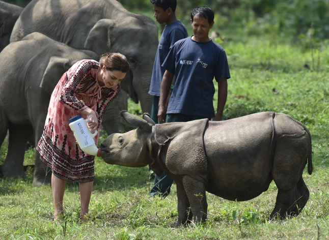 A sok hivatalos protokoll programba időként jótékonysági események is belevegyülnek. A hercegné pedig mindenből lelkesen kiveszi a részét, persze most annyira szuper programja volt, hogy melyikünk ne tartott volna vele? A hercegi pár egy természetvédelmi projektet ismert meg egy nemzeti parkban, ahol veszélyeztetett fajok fiatal példányait igyekszenek visszaszokatatni a természetes élőhelyeikre. Kate Middleton nemcsak megnézte a projektet, hanem aktívan be is segített az etetésnél! Elképesztően cuki bébi elefántot és orrszarvút is etetett. Ennek a cuki programnak, még a hasonló tevékenységek alkalmával jobbára a háttérben joválisan mosolygó Vilmos herceg sem tudott ellenállni. Bárcsak minket is elvinnének egy ilyen szafarira!