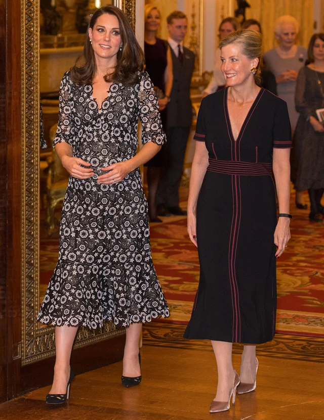 Sűrű időszak ez a várandós Katalin hercegné számára. Vasárnap este még a BAFTA- díjátadón láthattuk Vilmos oldalán, tegnap este pedig már a Buckhingham Palotában megrendezett divatgálán kellett helytállnia.