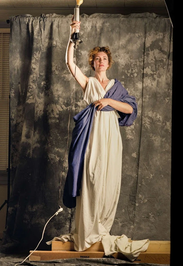A kép egészen sufnikörülmények között készült, a "lépcső", amelyen áll fotóhátterek dobozából lett hevenyészve összerakva, Columbia klepetusa egy lepedő, a fáklyát, pedig egy lámpabúrájától megszabadított olvasólámpa "alakította" a képen. Senki a résztvevők közül nem gondolta, hogy abban az ebédszünetben egy ikonná váló klasszikus dolgot alkotnak. Mások ugyan ebből milliomosok lettek volna talán, de nekik csak egy gyors, és vicces örömprojekt volt az ebédszünetben.