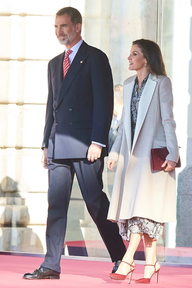 Elképesztően vagány! A bordó kiegészítőknek és a bézs kabátnak köszönhetően pedig a kifinomult elegancia megtestesítője. Észrevetted, hogy Letícia kiegészítői és Fülöp király nyakkendője tökéletes összhangban vannak?