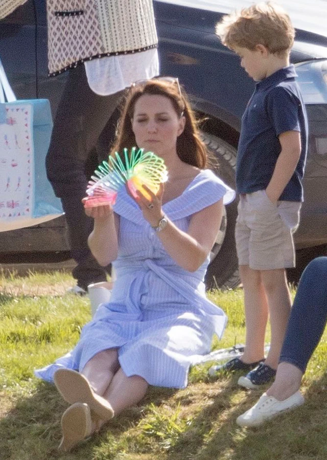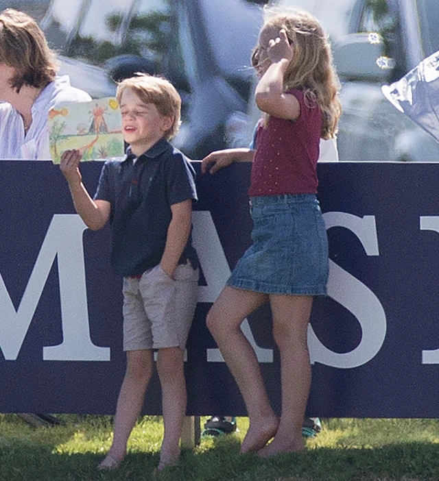 Vilmos, aki lelkes lovaspóló játékos éppen meccset játszott, és Louis-t kivéve az egész családja szurkolt neki. Jobban mondva Kate Middleton elvitte a gyerekeket a mérkőzésre, akik aztán elszórakoztatták magukat. Egész csapatnyi gyerek gyűlt össze a domboldalon, úgyhogy György és Sarolta sem unatkozott. A tesók fogócskáztak, Sarolta gyakorolta a bukfencezést, György egyelőre gyalogosan próbálgatta a pólózást, illetve unokatesvérével, Savannah-val volt alkalma megvitatni az egy nappal korábbi feledhetetlen jelenetet, amikor a himnusz közben csintalankodó kis hercegnek az unokatesó nemes egyszerűséggel befogta a száját.
