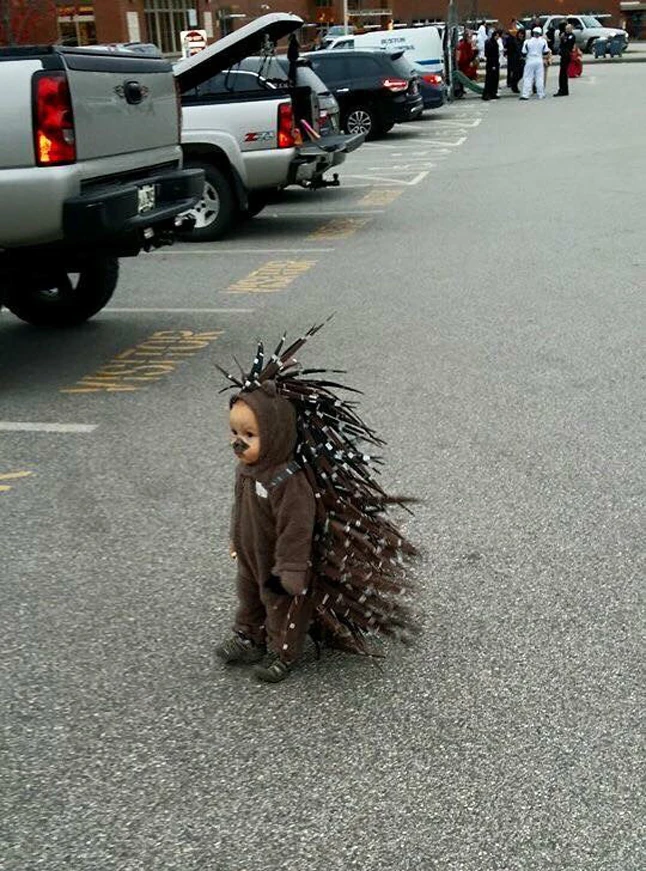 És végül itt egy kisgyerek, aki olyan, mint az útra tévedt sündisznó: